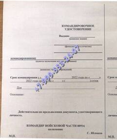 Заказать командировочное удостоверение военнослужащего в Ершове можно и по иным причинам, например, необходимо срочно ехать на учения или в зону боевых действий. В таком случае следует обращаться к руководству с заявлением. Если человек потерял, или испортил документы, он может обратиться в нашу компанию. Купить командировочное удостоверение военнослужащего с доставкой мы предлагаем недорого.